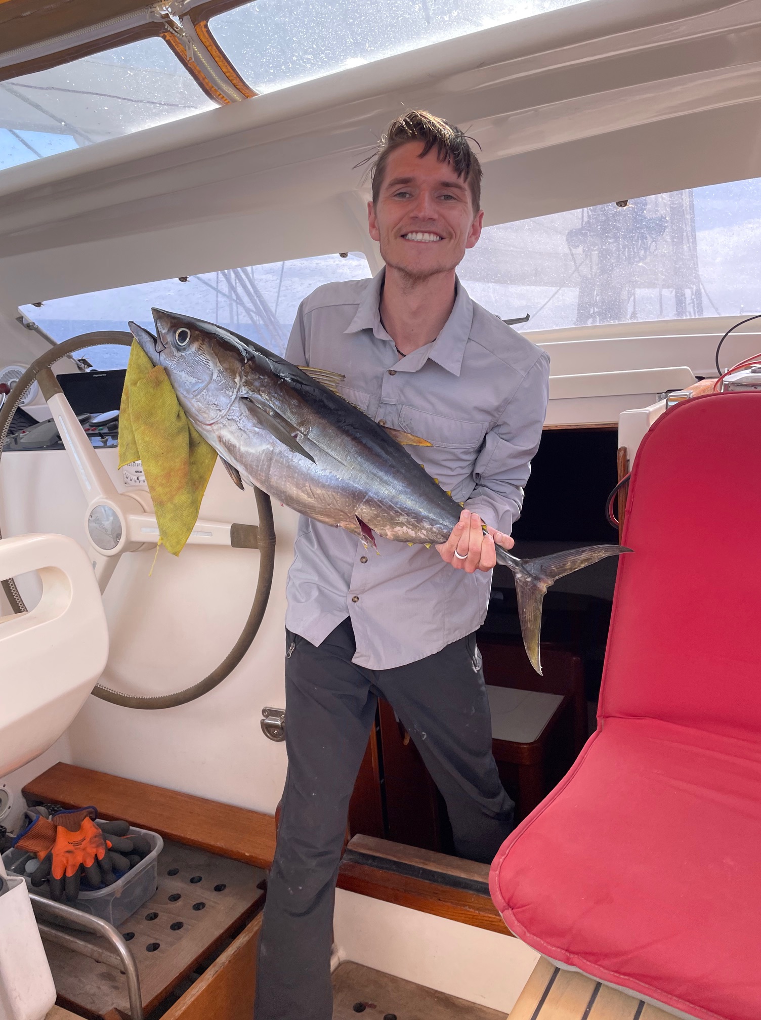 1500: finally reeled him in. No wonder he fought so hard, it was a Yellow fin Tuna!!! 🍣 what a great looking fish. Here I was planning on making burrito bowls for dinner, looks like it will be fresh fish tacos instead, yum.