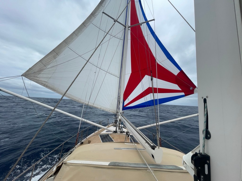 Anyways spinnaker is up and the boat is much faster and much more happy. Much less rolling.