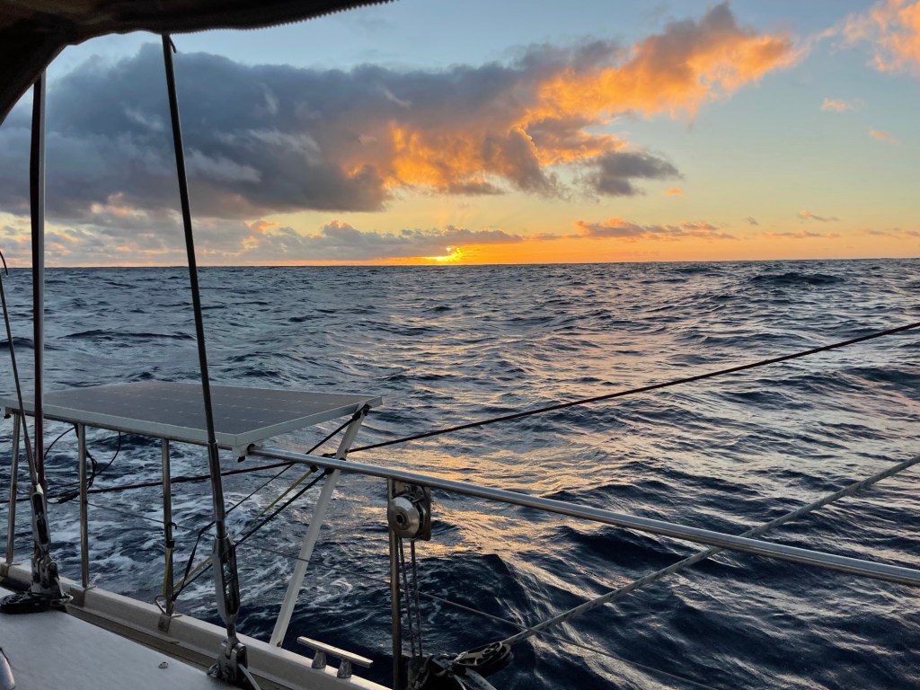 0835 It feels like the wind has returned since it lessened so much last night, but i’m afraid to say that out loud for fear it will hear me and leave us again. I thought 168Nm was pretty good daily run for us, alex was not impressed and said it was “ok” not good and also not the worst or a bad day either. Crazy that even when the wind dies to between 5-9 knots the boat still makes between 4.5-6knots of speed. I don’t get it.