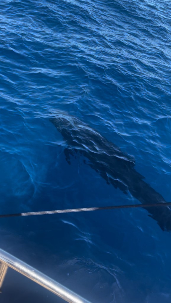 To reflect momentarily, the wildlife has been impressive. Even just the birds and flying fish. Example, This morning sitting in the cockpit by myself watching the fish float over the glassy water and their ripples being the only thing moving on the surface. They seem to be able to go much further since they don’t have large wave peaks and valleys to transverse. Also two small swallows have been with the boat for 2-3 days. They always flutter on either side of the boat, always staying at least 10 fathoms away, a cable length perhaps the old sailors would say? They flutter low and swoop around the water on a mission only they seem to know, stopping rarely and only momentarily at the surface of the water and then immediately take off again.
