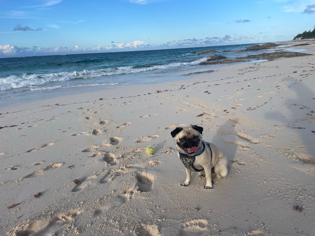 The calm waters allowed us to sail safely everywhere, swim off the boat every day, and still have easy access to land for Moses. Our daily walks on the beaches made him one tired pug.